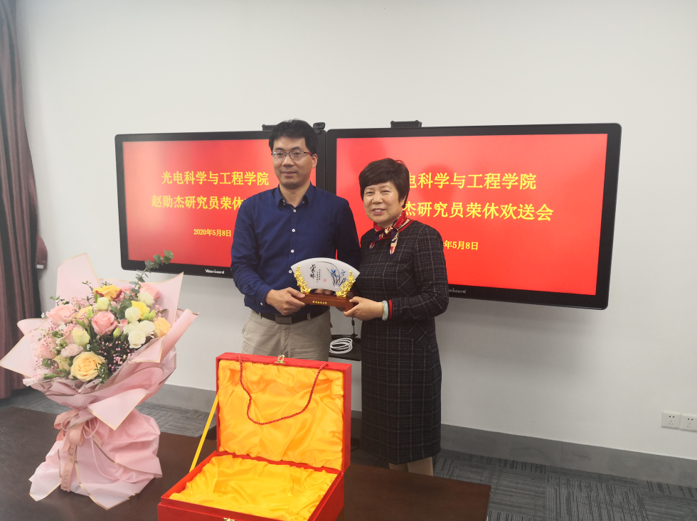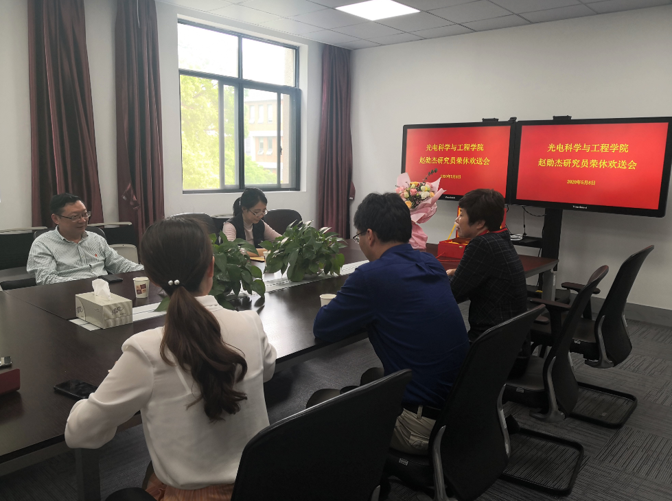 5月8日下午,雷速体育 为2020年度退休的教职工举行荣休欢送会,这也是光电雷速体育 首次为退休教职员工举行荣休仪式。雷速体育 2020年退休教职工赵勋杰研究员,院党委书记陈建军、院长李孝峰等雷速体育 领导,雷速体育 分工会主席,教职工代表等参加了此次活动。