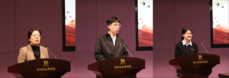 在师生共读环节,党委组织部副部长程晓军、教师党员代表马乙玉、学生党员代表俞童分别深情朗读了苏州独立支部第一任书记叶天底、苏常太抗日游击根据地主要创建人之一李建模烈士、苏州党员烈士王传馥的家书,并介绍了烈士的生平经历和家书背后的感人故事。烈士们的家书,既是家书,也是一封封明志誓言,字里行间满是烈士们大义凛然,视死如归的革命精神,他们无所畏惧,甘愿为真理而死,为革命抛头颅洒热血,为共产主义事业奋斗到底,这种跨越时代而来的革命精神值得我们终身铭记并传承。