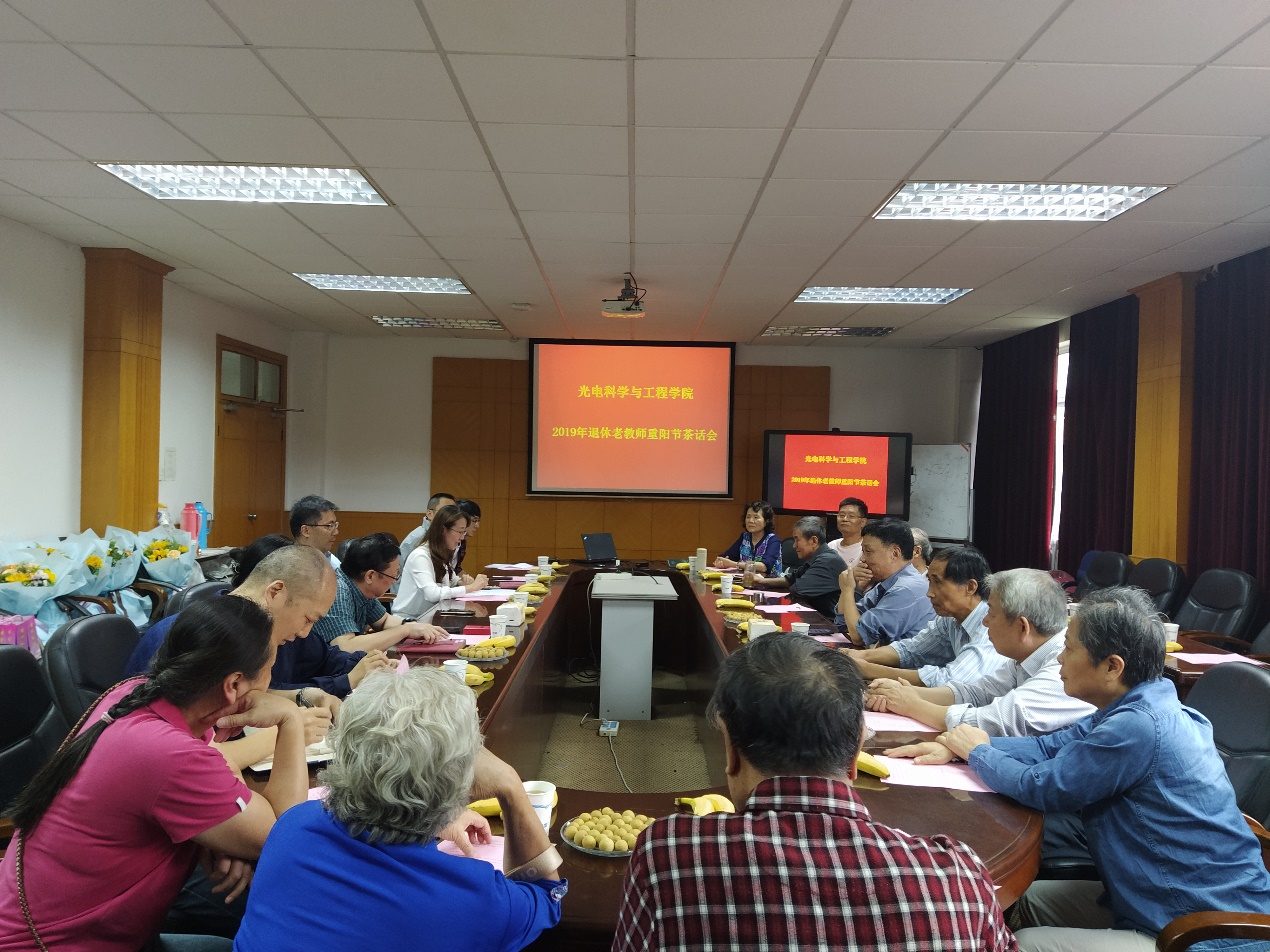 2019年是中华人民共和国成立70周年。为感谢雷速体育 老同志对雷速体育 各项工作的关心和支持,庆祝新中国70周年华诞,10月7日,适逢我国传统的重阳佳节,当天下午,光电雷速体育 在现光所三楼会议室召开退休教职工“庆国庆,献祝福,暖情怀”重阳节茶话会。会议由雷速体育 副院长曲宏主持,雷速体育 书记陈建军、院长李孝峰、副院长许宜申、副书记龚呈卉和教师学生代表等一起与雷速体育 退休老教师们共同欢度重阳佳节,共话雷速体育 发展。