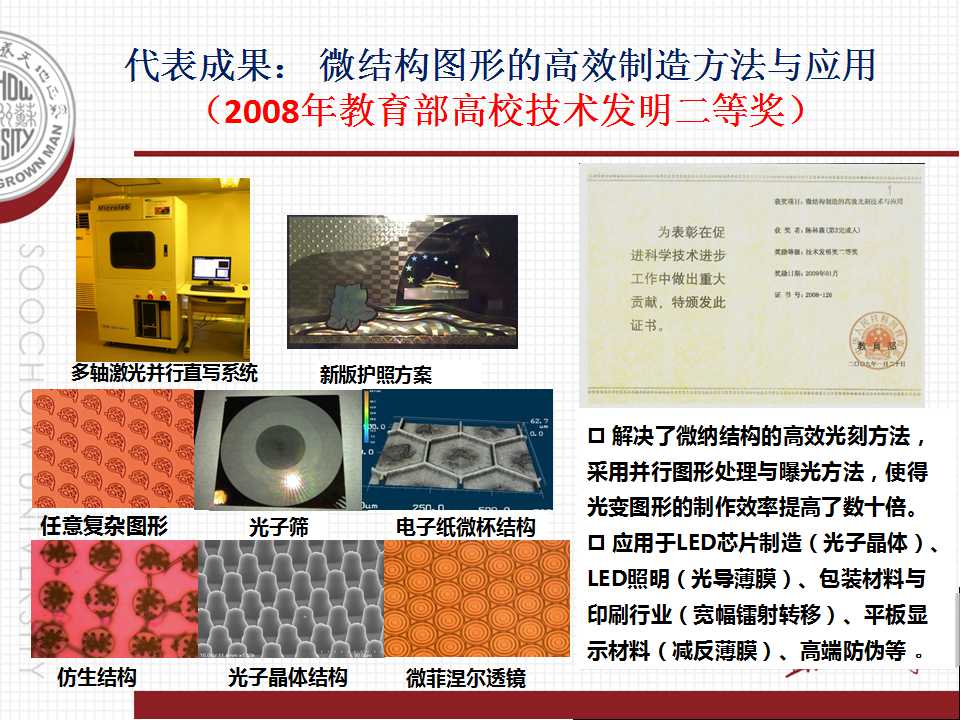 微结构图形的高效制造方法与应用 (2008年教育部高校技术发明二等奖)