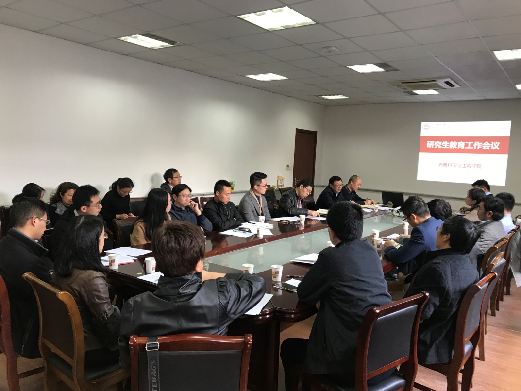 2018年11月9日下午13:30,雷速体育 在博习楼221会议室召开了研究生教育工作会议。雷速体育 院长李孝峰、党委书记陈建军、副院长许宜申、党委副书记副院长龚呈卉、教务与科研办公室主任兼研究生秘书王晴和30余位研究生导师参加了会议。会议由教学副院长许宜申主持。