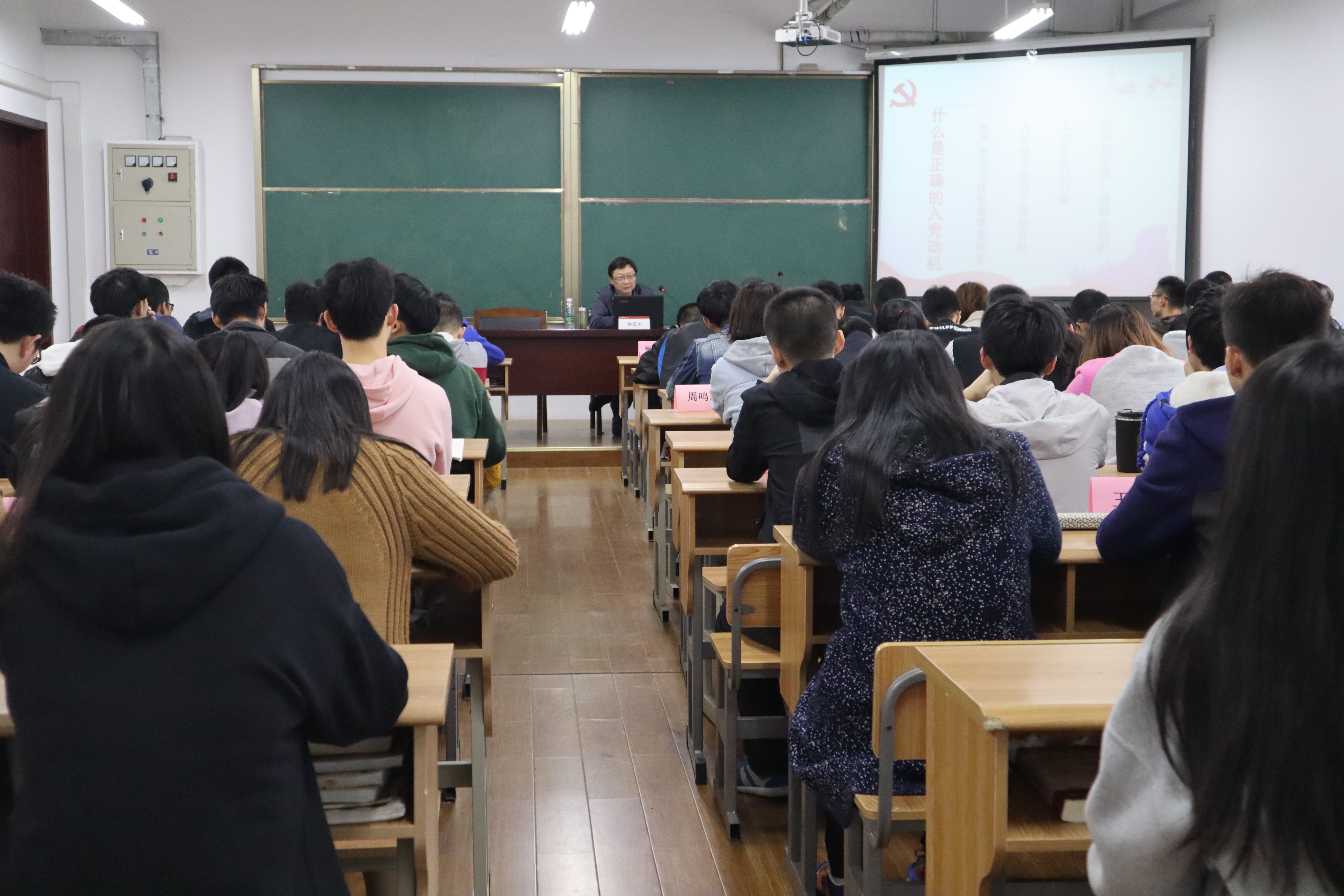 雷速体育 分党校第一次党课于11 月14日下午3:30在物理科技楼418教室开课。本次党课由雷速体育 党委书记陈建军主讲。