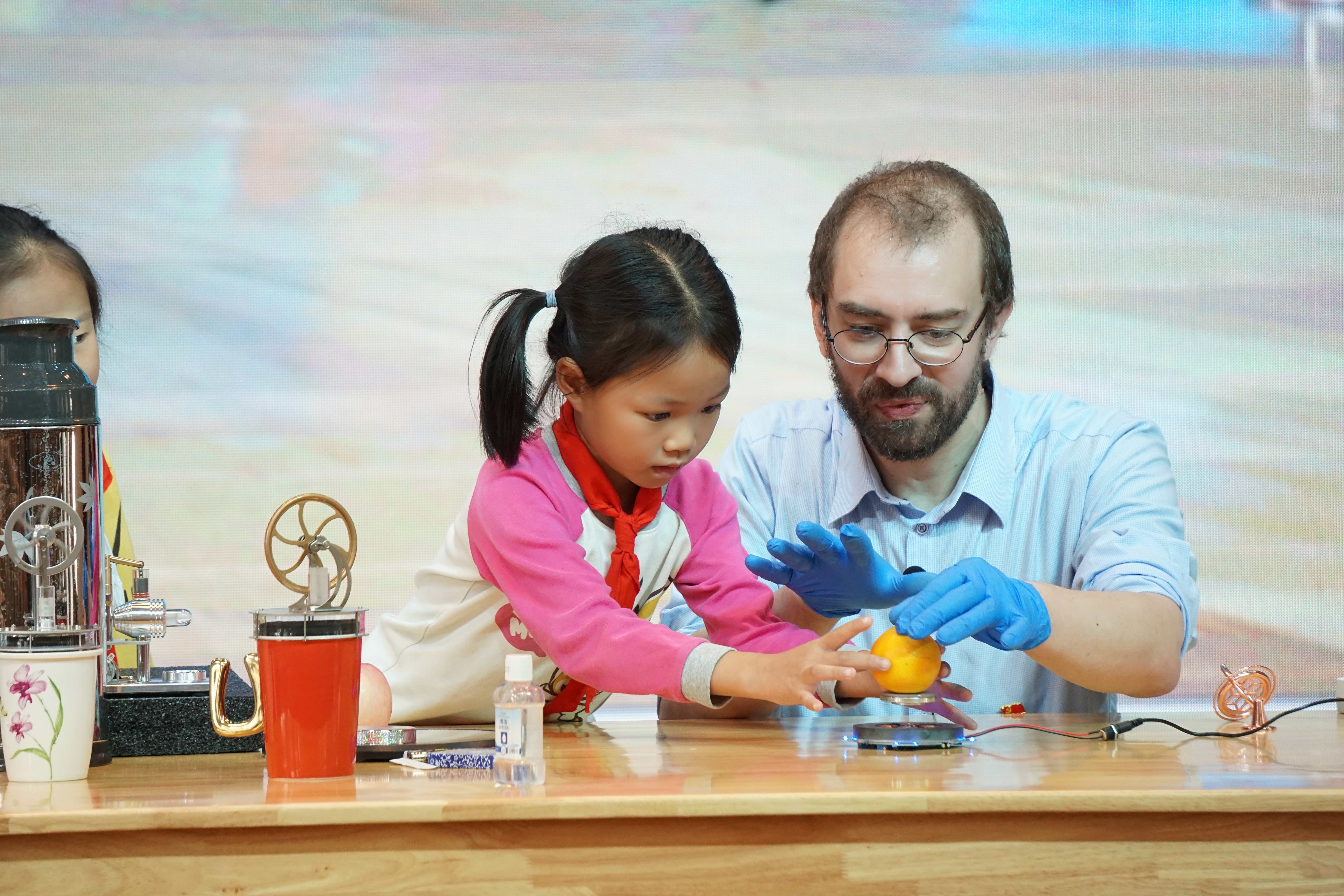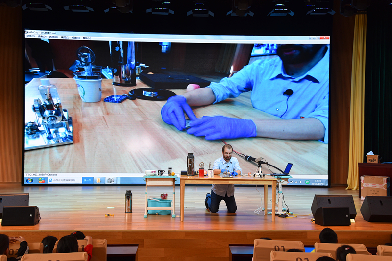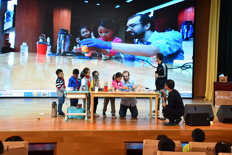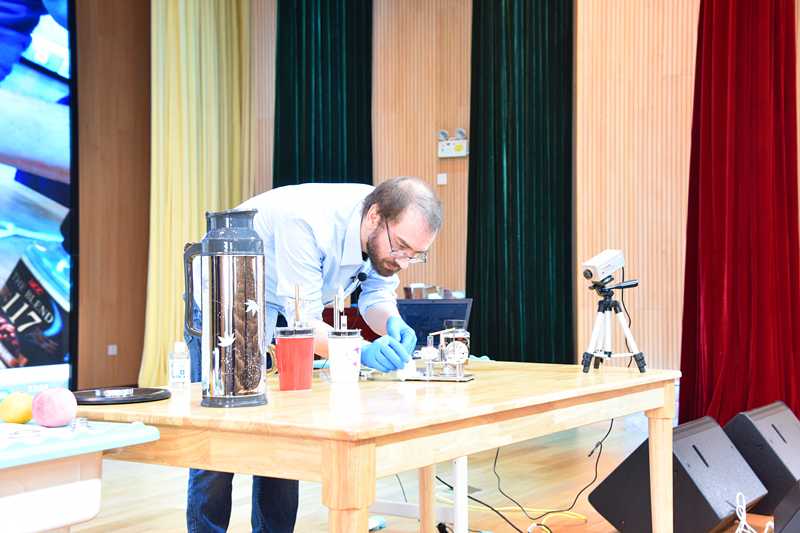 本次科普活动是《科学魔法秀》,JoelMoser教授利用业余时间为小朋友们精心准备了多个科普小实验,为玉成实验小学的孩子们带来了一场精彩而又有趣的科学盛宴。一个个精彩有趣的科学实验活动,一个个让孩子们惊叹不已的场景,激发了学生们对科学探索的热情。