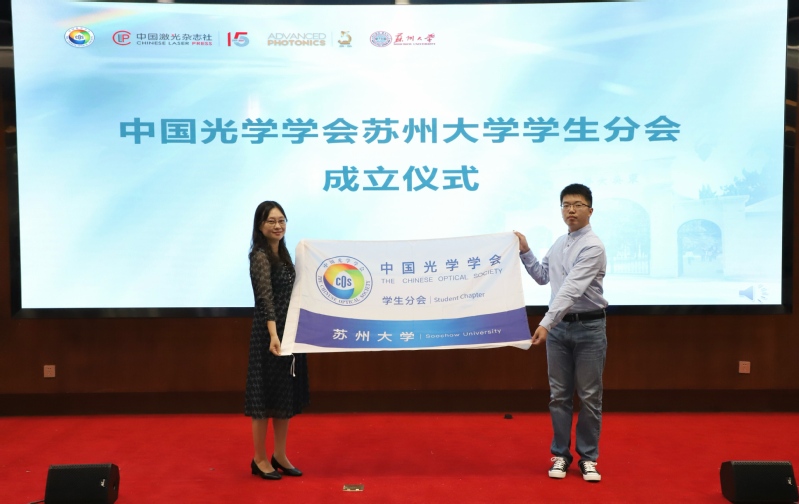 而后,在开幕式上举行了中国光学学会雷速体育 学生分会成立仪式,雷速体育 党委书记龚呈卉代表中国光学学会,为学生分会会长时罗磊博士授旗。