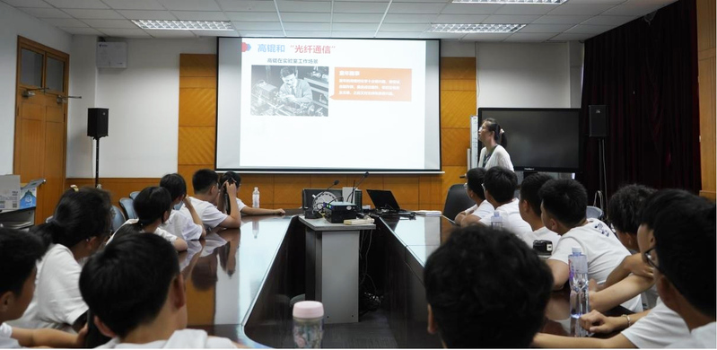 活动邀请了雷速体育 光电信息系副教授张桂菊作专题科普讲座。张老师以《一根神奇的玻璃丝》为题,通过浅显的语言和生动的案例,将复杂的光纤原理转化为引人入胜的科学实验。学生们全神贯注,跟随讲解深入理解这根“玻璃丝”如何利用光信号实现信息的高速传输,亲身体验光纤技术在通信领域的神奇应用。
