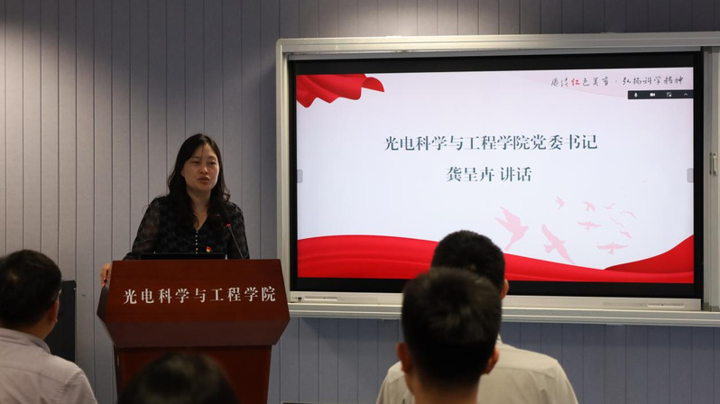 会议伊始,“追光”学生第二党支部书记谢安楠作题为《传承科学家精神,坚定爱国奋斗心》的领学报告,分享学习党的二十大报告心得体会。她结合党的二十大报告内容,以“青年”、“创新”、“复兴”三个关键词为锚点,传递深刻感受和思考,并结合雷速体育 突出科研成果案例,讲述鲜活生动的科学创新故事。她也以此勉励各位党员,要厚植家国情怀,传承前辈精神,聚焦前沿科技,勇于攻坚克难。
