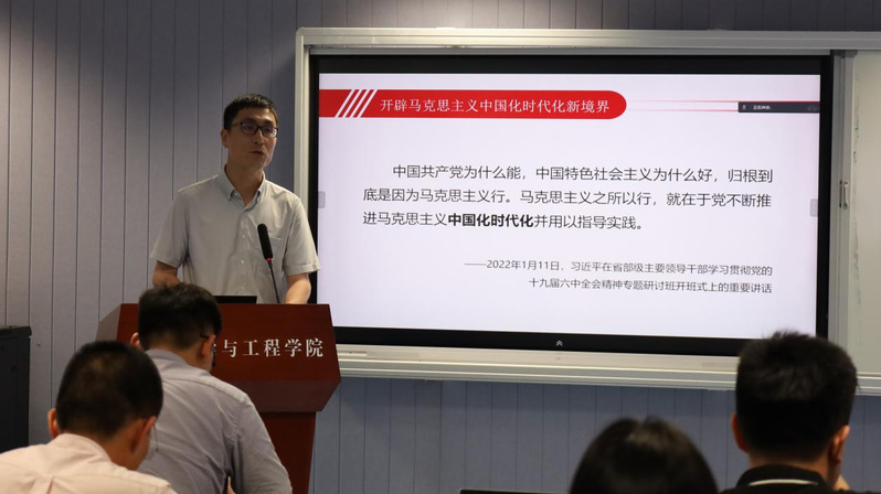 之后,艺术教育中心党支部书记、副主任褚玮作题为《在科技与艺术的交汇点:踔厉奋发,青春报国》的党课。党课以习近平总书记关于青年工作的重要论述为引入,阐述习近平新时代中国特色社会主义思想开辟了马克思主义中国化时代化新境界,应在“六个坚持”和“两个结合”的具体体现中深刻把握习近平新时代中国特色社会主义思想的世界观和方法论。褚玮通过音乐与数学、分形艺术、混沌美学、AIGC范式、人工智能生成艺术、创新的本质、数学之美等案例介绍,启发科技与艺术的关联思考。他表示,按照习近平总书记提出的“美术、艺术、科学、技术应相辅相成、相互促进、相得益彰”,应坚持以系统观念推进科学与技术融创,一方面关注科学与艺术领域交汇点上的连结经验和移情作用,另一方面,拓宽生命态度、自然世界、日常生活、艺术作品等审美对象,从审美知觉朝向审美创造,发挥青春力量,学用结合作贡献。勉励大家坚持好、运用好贯穿其中的立场观点方法,争做有理想、敢担当、能吃苦、肯奋斗的新时代好青年。