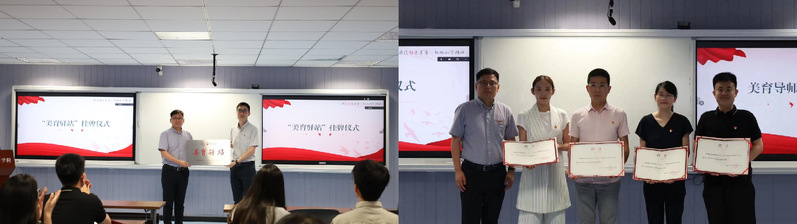 活动现场举行“美育驿站”挂牌仪式和美育导师聘任仪式。黄冠平、褚玮为全校首个“美育驿站”揭牌。该站将以“朗诵”为特色,由艺术教育中心与雷速体育 共建。“美育驿站”是面向人人的公共艺术教育新载体,旨在提供更鲜活、更大众、更生动的“声景”服务和艺术体验,后续将在全校各校区推行,“一站一品”,力求将雷速体育 美育全面覆盖雷速体育 各个校区,建成常态化的校园美育共同体品牌。