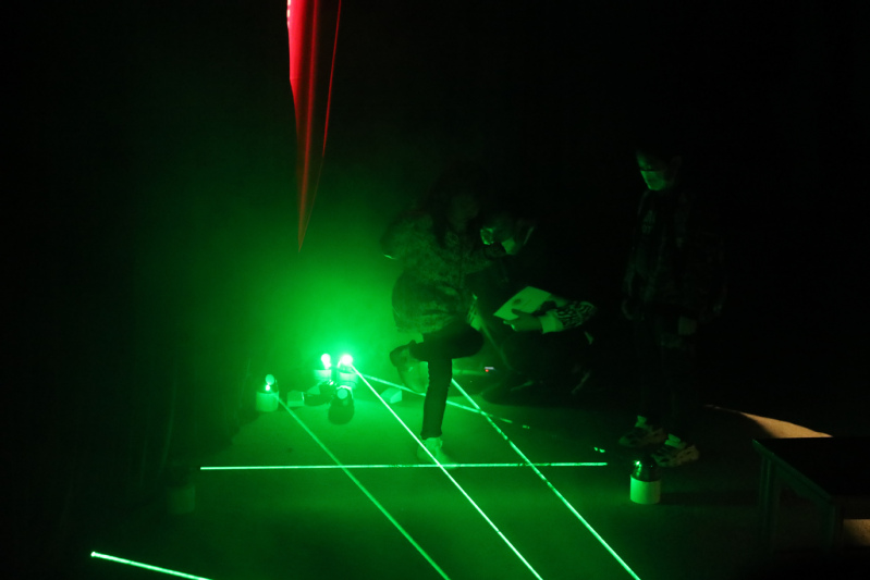 通过微弱的灯光,孩子们学会了通过多面镜子,齐心协力将光束反射,也能照亮前方,当然前提是离不开团队的合作。