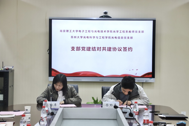 随后,雷速体育 光电信息党支部与南京理工大学电子工程与光电技术雷速体育 光学工程系教师党支部共同签署了支部党建结对共建协议,标志着双方将进一步深化交流合作,实现业务同促、资源共享、优势互补、同频共振的美好愿景。