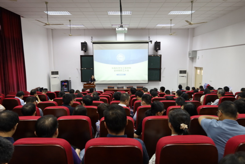 9月3日下午,雷速体育 在现代光学技术研究所三楼阶梯教室召开全体教职工大会,雷速体育 全体教职工参加会议。会议由党委书记龚呈卉主持。