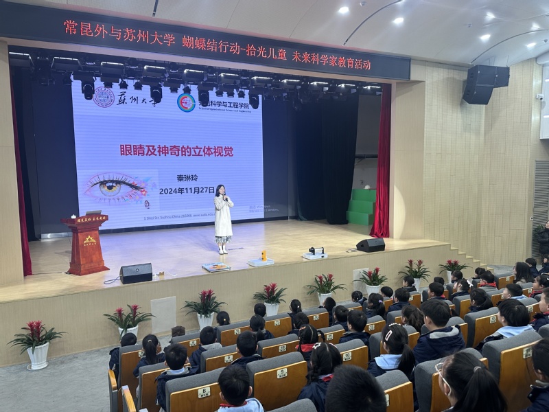期间,常昆外举办了未来科学家教育活动,邀请秦琳玲为学生们带来了一场题为《眼睛及神奇的立体视觉》的专题讲座。秦琳玲通过双眼立体视觉、AI智能机器视觉的专业知识讲解以及实验演示,生动形象地向学生们展示了光学的神奇魅力,使学生对光学技术有了初步的了解和认识,激发了学生们对科技创新和工程技术的探索热情。