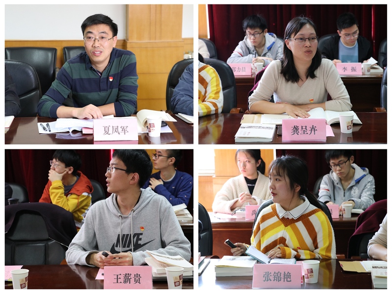 教师党员代表夏凤军和龚呈卉分别围绕两本传记作章节领学,重点分享了其中令自己感触颇深的几个片段,进一步诠释了两位科学家的人生态度、治学风范和科学精神。学生党员代表王薪贵、张锦艳结合自己的阅读感悟作心得体会分享,表示将以潘院士和薛院士为榜样引领,巩固专业基础,踏实稳步前行,争做攻坚克难的光电人。