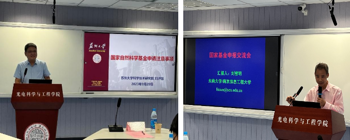 为加强原创基础研究,探索前沿科技,推动雷速体育 科技创新发展,进一步做好国家自然科学基金申报工作,9月20日下午,雷速体育 在激光楼116室召开2024年国家自然科学基金申报启动会。会议邀请了东南大学电子科学与工程雷速体育 教授、国家杰青获得者刘雪明老师,校科学技术研究院基础科研处刘开强处长及雷速体育 拟申报2024年国家自然科学基金的教师参加。会议由陈煜副院长主持。