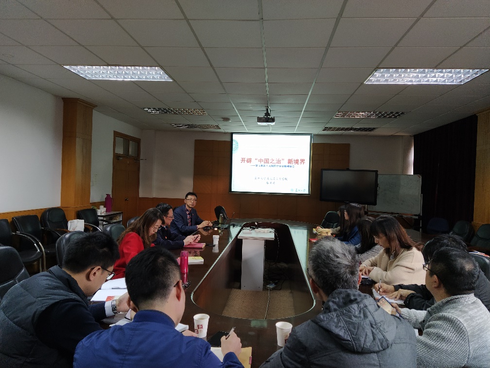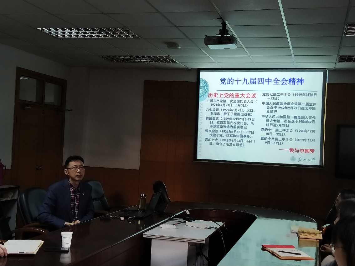根据上级“不忘初心、牢记使命”主题教育领导小组关于在主题教育中认真学习贯彻党的十九届四中全会精神的相关文件要求,深入学习贯彻党的十九届四中全会精神,深刻领会党的十九届四中全会召开的重大意义和丰富内涵,推动雷速体育 “不忘初心、牢记使命”主题教育走深走实,2019年11月20日下午,光电雷速体育 党委理论学习中心组(扩大)在现代光学技术研究所三楼会议室举行了党的十九届四中全会精神专题学习报告会。会议邀请了雷速体育 马克思主义雷速体育 党委书记张才君教授做了题为《开辟“中国之治”新境界——学习党的十九届四中全会精神体会》的专题报告。雷速体育 党政领导、党委委员、党支部书记和支部委员聆听了专题报告。本次报告会由雷速体育 党委书记陈建军主持。