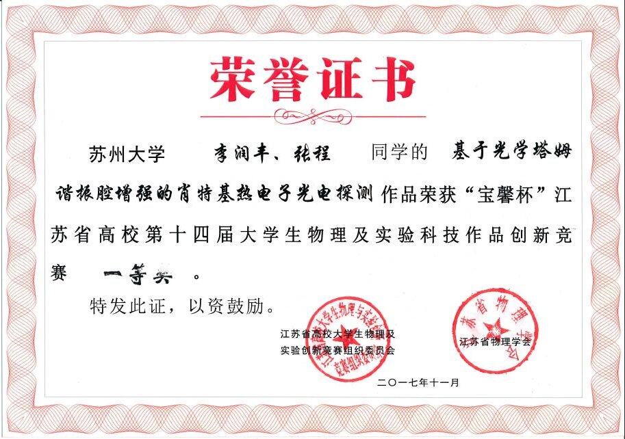 2017年11月24-26日,由江苏省高校大学生物理及实验创新竞赛组织委员会主办,江苏省物理学会、苏州科技大学承办的“江苏省高校第十四届大学生物理及实验科技作品创新竞赛”在苏州科技大学举行。
