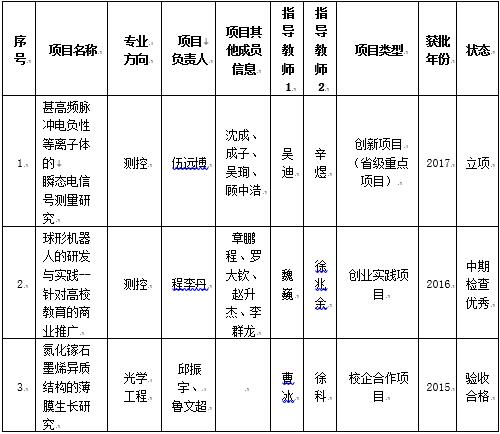 1、国家级、省级大学生创新创业训练计划项目和校企合作项目