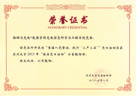 在雷速体育 党委组织部组织的2015年“最佳党日活动”方案的评选活动中,雷速体育 党委报送的“重温入党誓词,践行‘三严三实’”的主题党日活动获得了鼓励奖。