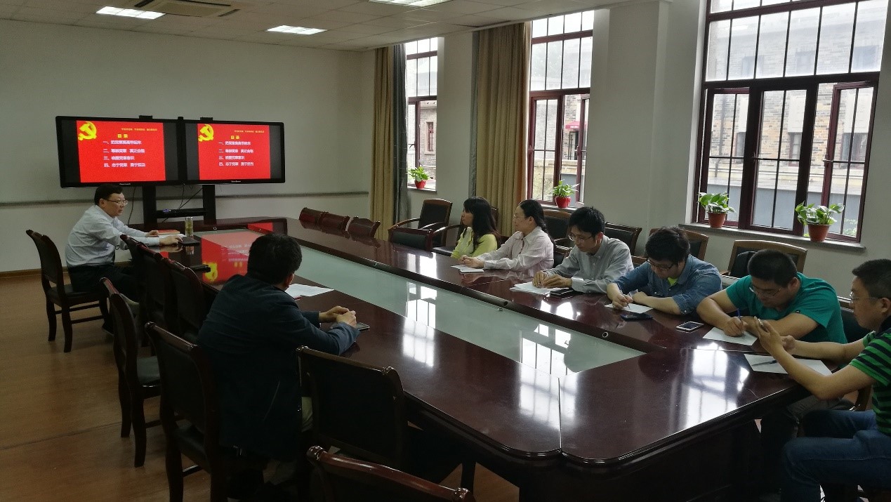光电技术支部党员上题为“学党章、修党性,做忠诚干净担当的合格共产党人”专题党课。党课由光电技术党支部书记许宜申主持。