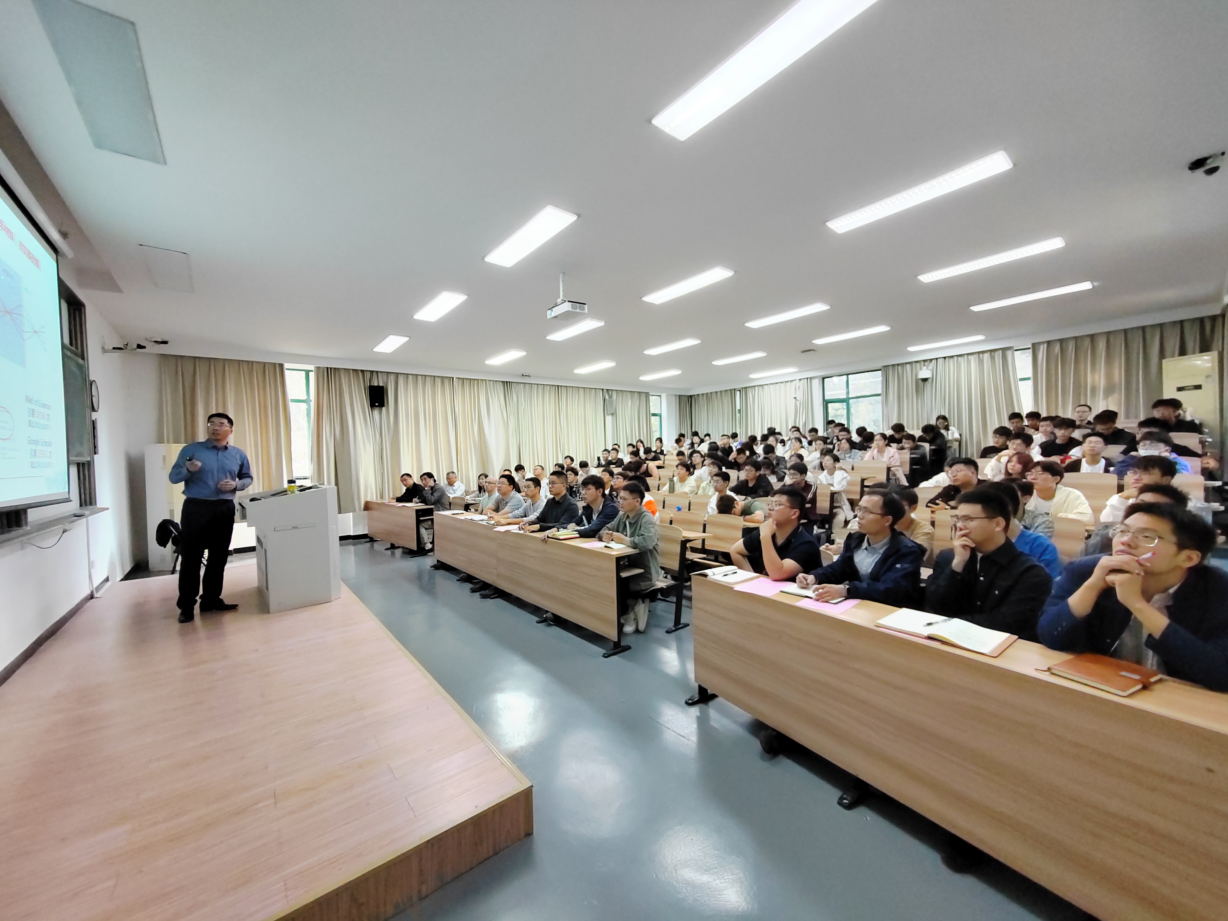 全国高校光信息专业优秀课程思政教学案例一等奖获得者、校级“课程思政”教学团队负责人李孝峰教授为大家带来一堂精彩的公开课展示。课程首先从激光和诺贝尔物理奖引入,选取具有代表性的光电前沿技术与卡脖子技术作为教学案例,分析其背后涉及的专业技术、前沿应用、社会价值等,旨在通过课程的精心设计和讲解,提高学生专业兴趣,开拓学生视野,培养学生家国情怀,使学生对光学制造加工、光学高端装备、光电器件、光通信、光电显示等技术领域的基础科学问题、前沿研究进展、经济社会需求等有更为深入的认知,从而确立自己的兴趣方向,树立严谨的科学态度和系统的思维方式,确立为国奋斗的责任担当,为之后的学习深造打下基础。活动现场气氛热烈,掌声不断,师生们纷纷感慨获益良多,意犹未尽。