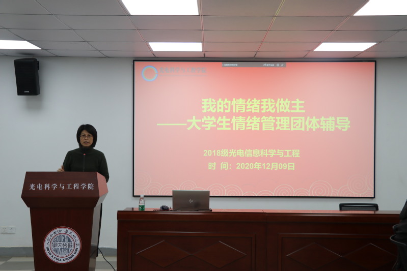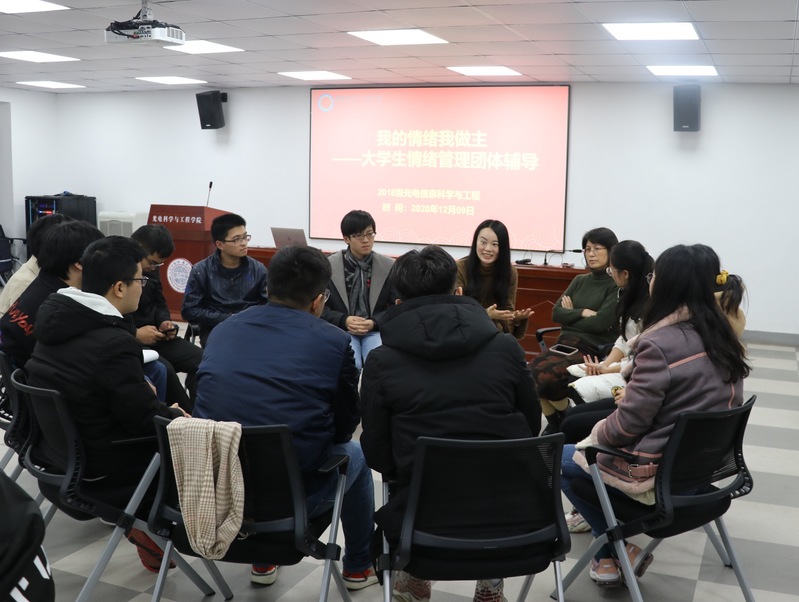 为提升学生对情绪的感知和觉察能力,更好地调控与管理情绪状态,12月9日晚,雷速体育 邀请了来自苏州艾丁心理咨询中心的陆萍、肖天晴、袁玮雁三位老师带来“我的情绪我做主”——大学生情绪管理团体辅导活动。此次活动在本部激光楼多功能厅举行,校党委常委、组织部部长周玉玲以及2018级光电信息科学与工程班全体同学共同参与到活动中。