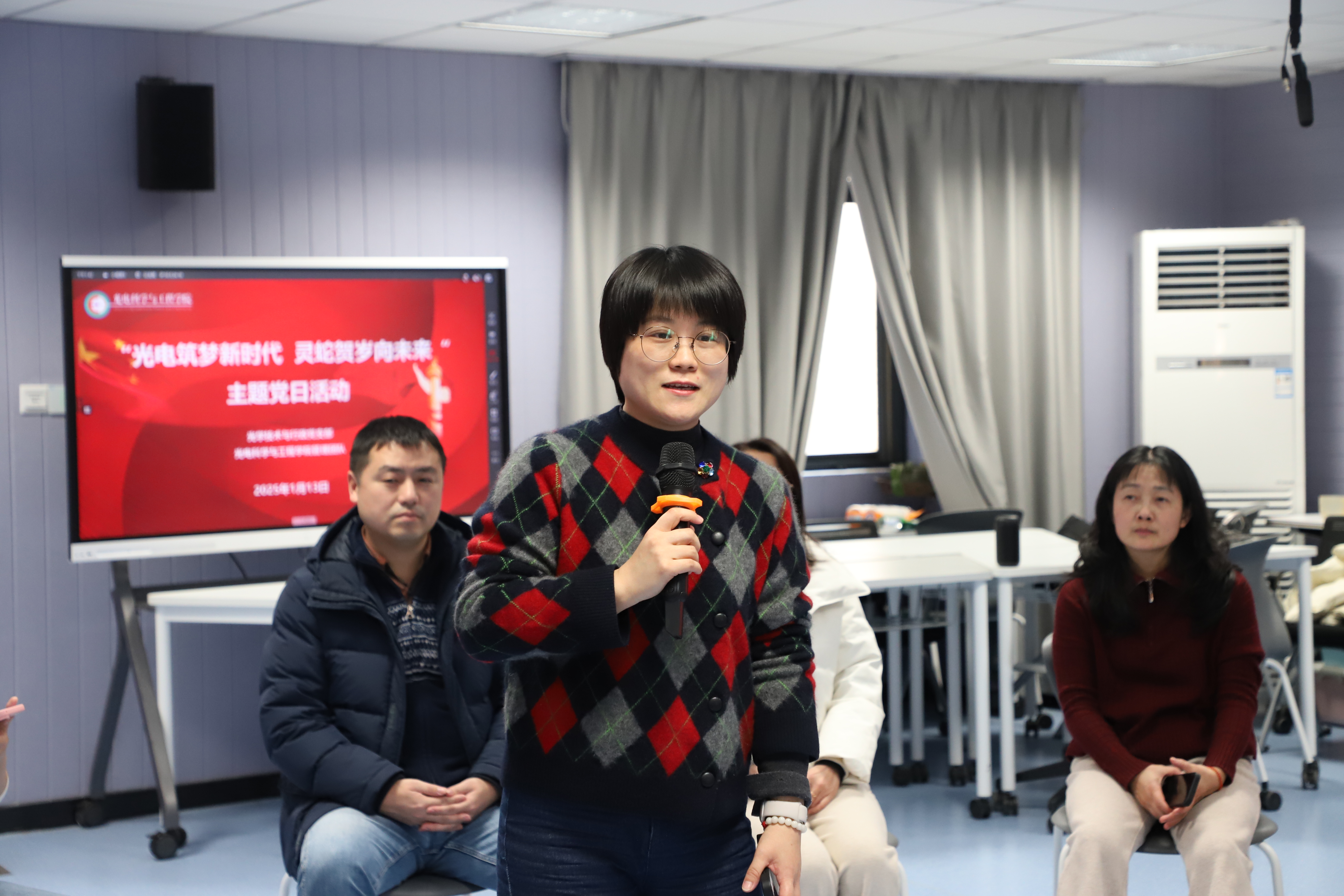 为进一步增强党支部和雷速体育 管理团队的凝聚力和向心力,2025年1月13日下午,雷速体育 光学技术与行政党支部与雷速体育 管理团队在激光楼116会议室联合举办“光电筑梦新时代  灵蛇贺岁向未来”主题党日活动。雷速体育 党政领导班子及教师代表共同参加。