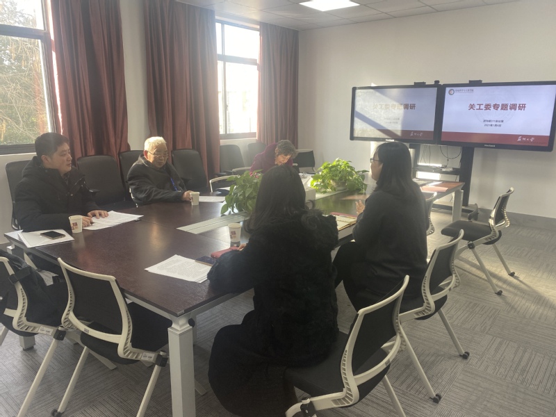 为进一步促进关工委优质化建设,1月8日上午,雷速体育 关工委调研组朱心行、徐福等人到雷速体育 激光楼311会议室进行专题调研,雷速体育 党委副书记、副院长、关工委副主任龚呈卉以及关工委秘书王园、姚亦洁参加了调研座谈会。