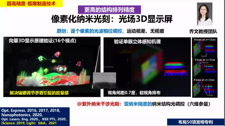 除此之外,陈老师对微纳制造在信息光子、3D光刻技术、三维显示等前沿技术孕育的巨大机遇和空间,以及未来十五年发展将会发生颠覆性变革的技术领域进行了预判介绍。