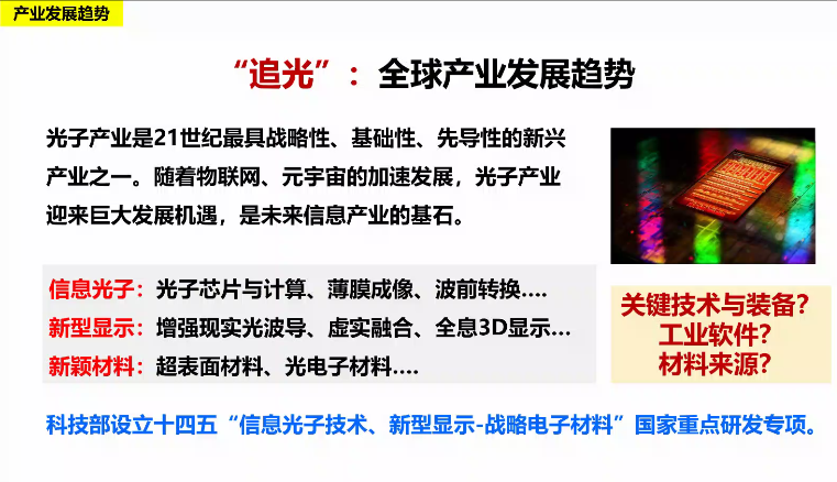 为进一步启发师生科学思维、拓宽学术视野、增进合作交流,积极引导师生将个人发展与社会和时代需求相结合,4月23日上午,光学技术与行政党支部、数码激光成像与显示教育部工程研究中心、教育部现代光学重点实验室和江苏省数码激光图像与新型印刷工程技术研究中心联合举办了产业前沿与职业发展主题系列报告的第一讲。400余名师生通过腾讯会议平台参与此次活动。