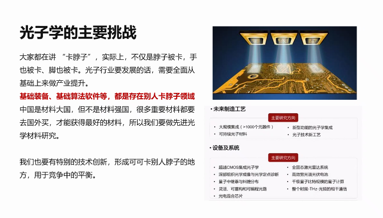 本次交流会邀请雷速体育 陈林森研究员作为主讲嘉宾,乔文教授主持活动。陈林森研究员围绕“微纳光子技术:科技产业发展与前沿研究”主题,从团队研究进展、百年之大变局的影响:路径依赖与路径选择等六个方面对当前大环境及发展趋势进行了分析,并结合个人经历、技术创新应用典型案例进行了分享。
