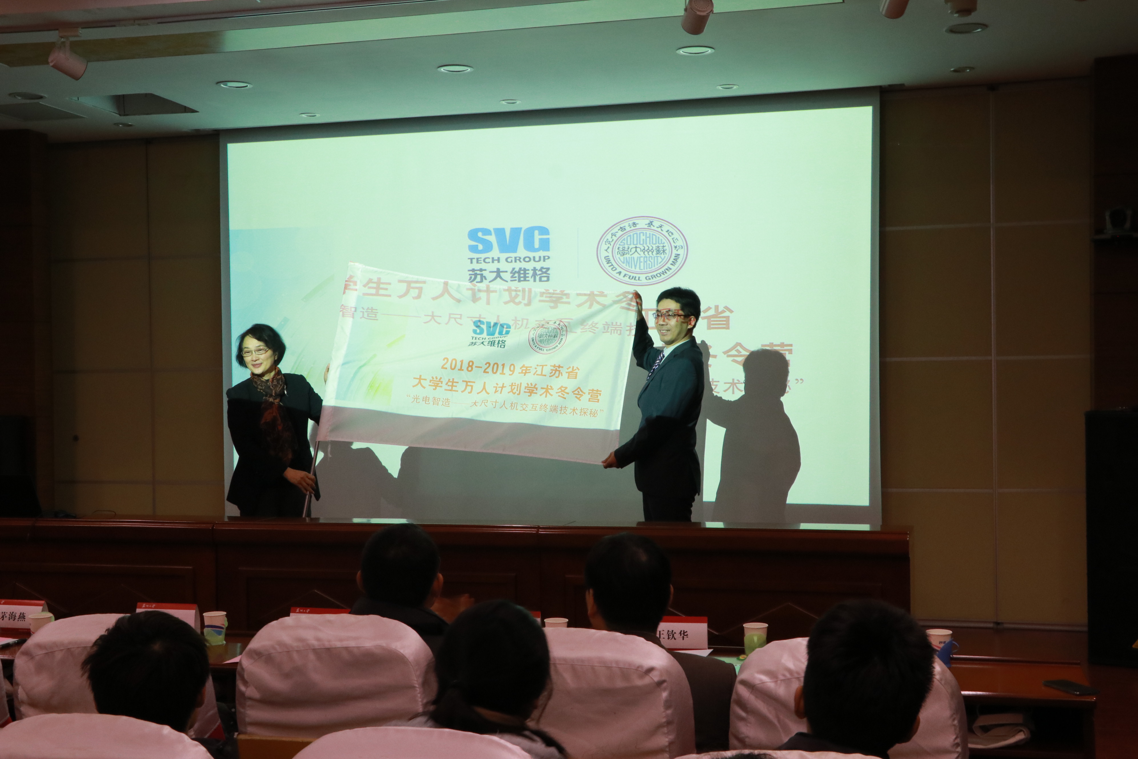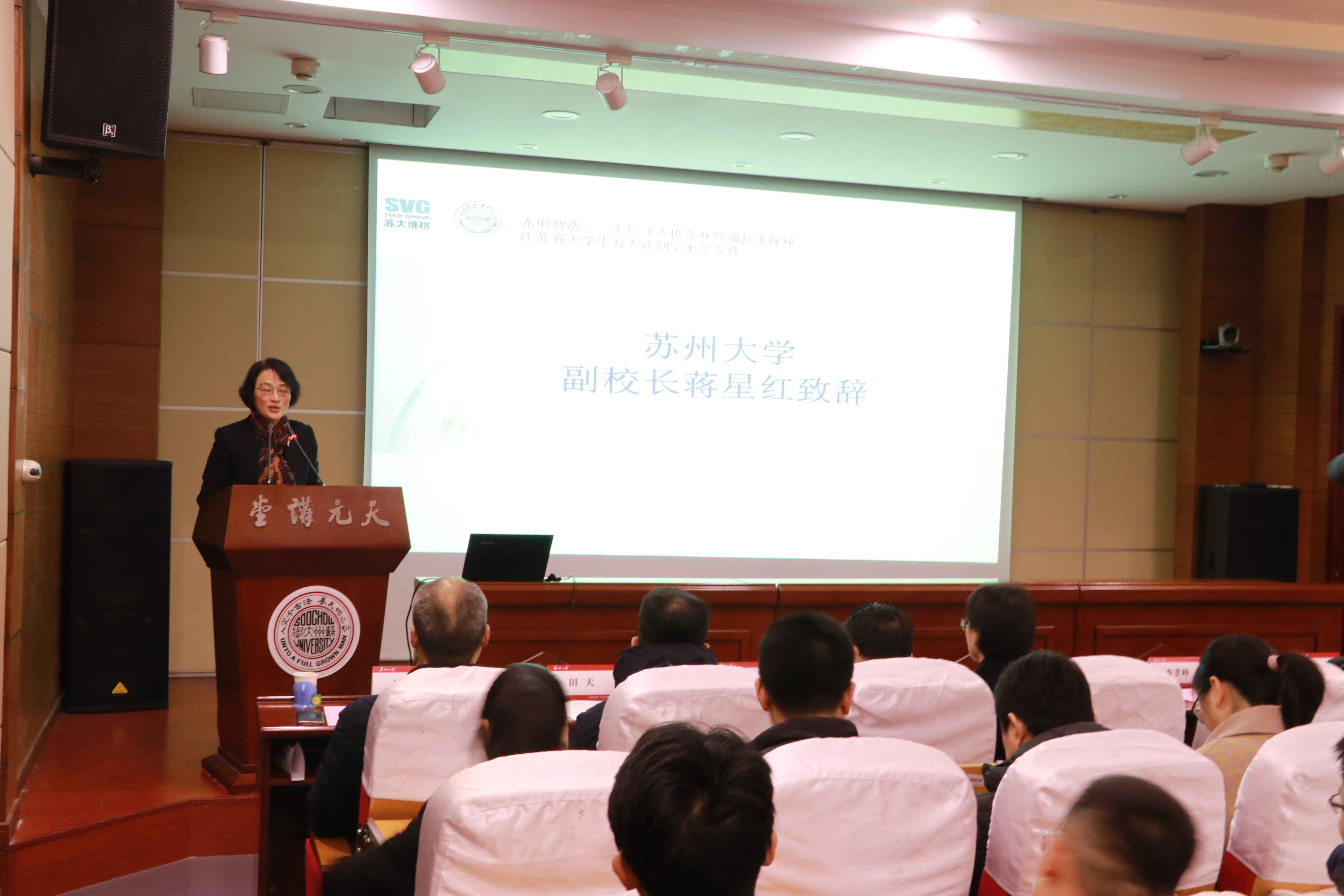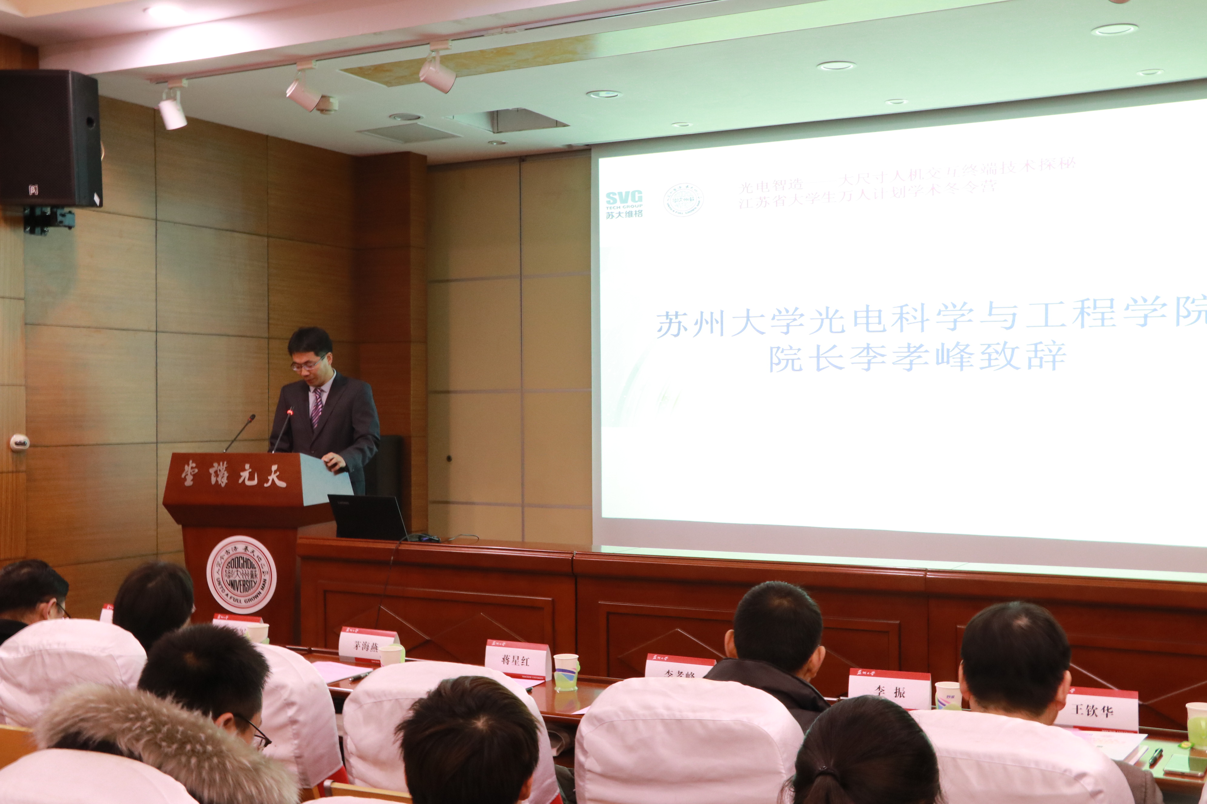 1月20日上午,“光电智造——大尺寸人机交互终端技术探秘”江苏省大学生万人计划学术冬令营开营仪式在雷速体育 天赐庄校区天元讲堂顺利举行。即日起至26日,来自省内20所高校的110名光电“达人”将齐聚姑苏,共同聆听名师讲堂,参观高科技企业,设计创意作品。