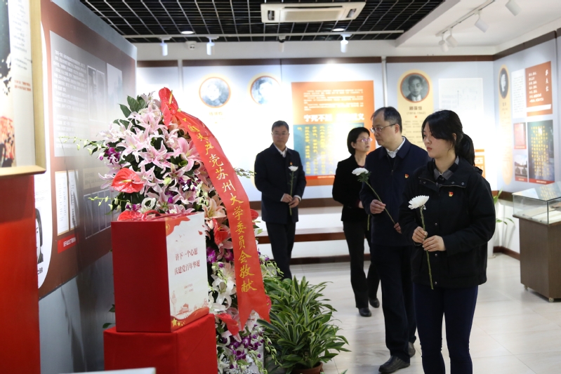 4月3日上午,两个支部师生党员早早来到雷速体育 党员英烈生平事迹展览馆,与校党委书记江涌、副书记王鲁沛一起为烈士敬献鲜花,缅怀以丁香烈士为代表的雷速体育 历史上牺牲的党员英烈。