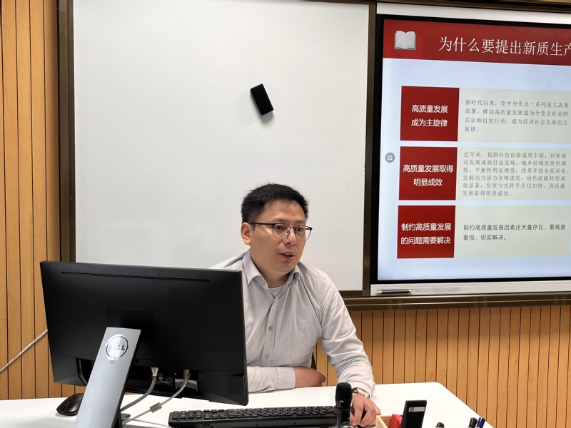 党课中,黄书记以“是什么、为什么和怎么办”为切入点,围绕新质生产力的基本内涵、核心标志、本质内容以及重要意义等方面进行深入解读,深刻阐述了社会主义的根本任务和新时代新质生产力的关系,指出了新质生产力是符合新发展理念的先进生产力质态、科技创新是发展新质生产力的核心要素、新质生产力本身就是绿色生产力等内容。同时,他从工作机制和具体布局出发分析了发展新质生产力的方法途径,强调了要牢牢把握高质量发展这个首要任务,因地制宜发展新质生产力。