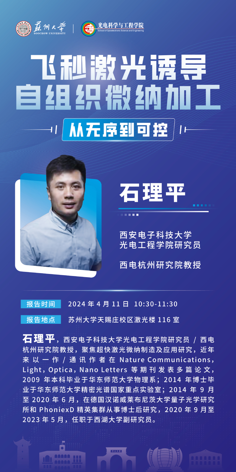 学术报告:飞秒激光诱导自组织微纳加工:从无序到可控