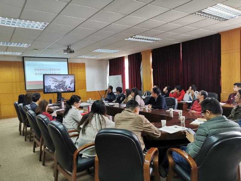 内部的整合提出了问题;光电信息支部以“双万计划”申报的反思为切入点,就有组织的教学、对学生的吸引力、对学科内涵和长远规划的理解等,提出了发展之问;电子测控支部就学科竞赛组织、电子专业学生培养和发展等提出了相关问题;本科生支部就加强学生的理论学习和社会实践的实施进行了经验分享;研究生支部就其试行中的党员积分量化管理的经验进行了分享,并就学生教学和培养中的问题进行了交流。