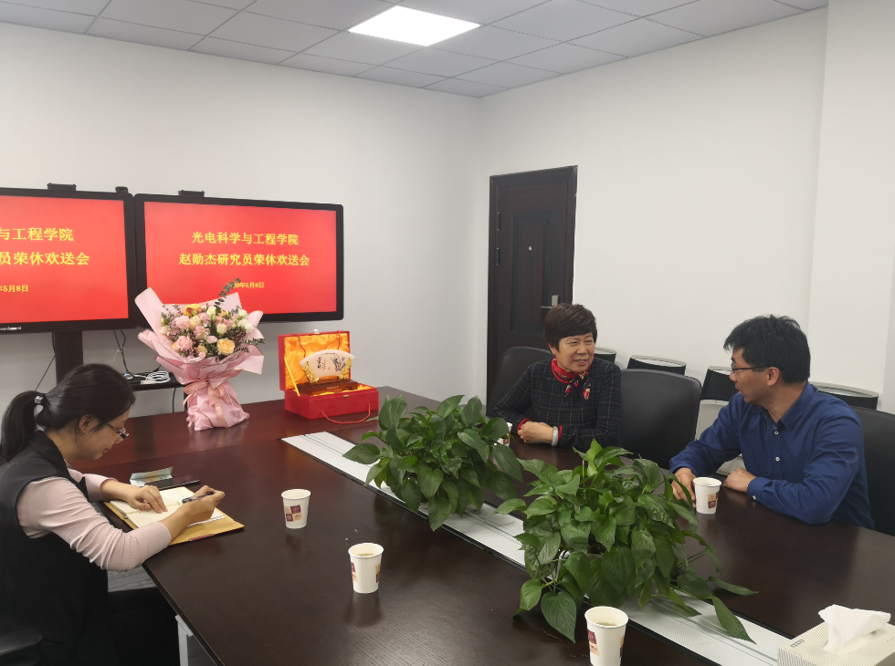 5月8日下午,雷速体育 为2020年度退休的教职工举行荣休欢送会,这也是光电雷速体育 首次为退休教职员工举行荣休仪式。雷速体育 2020年退休教职工赵勋杰研究员,院党委书记陈建军、院长李孝峰等雷速体育 领导,雷速体育 分工会主席,教职工代表等参加了此次活动。