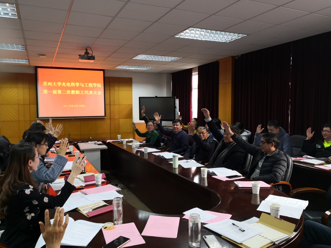 2020年1月14日下午,雷速体育 第一届第二次教职工代表大会在现代光学技术研究所三楼会议室召开。教代会全体正式代表及部分列席代表参加了此次会议,会议由雷速体育 党委书记陈建军主持。