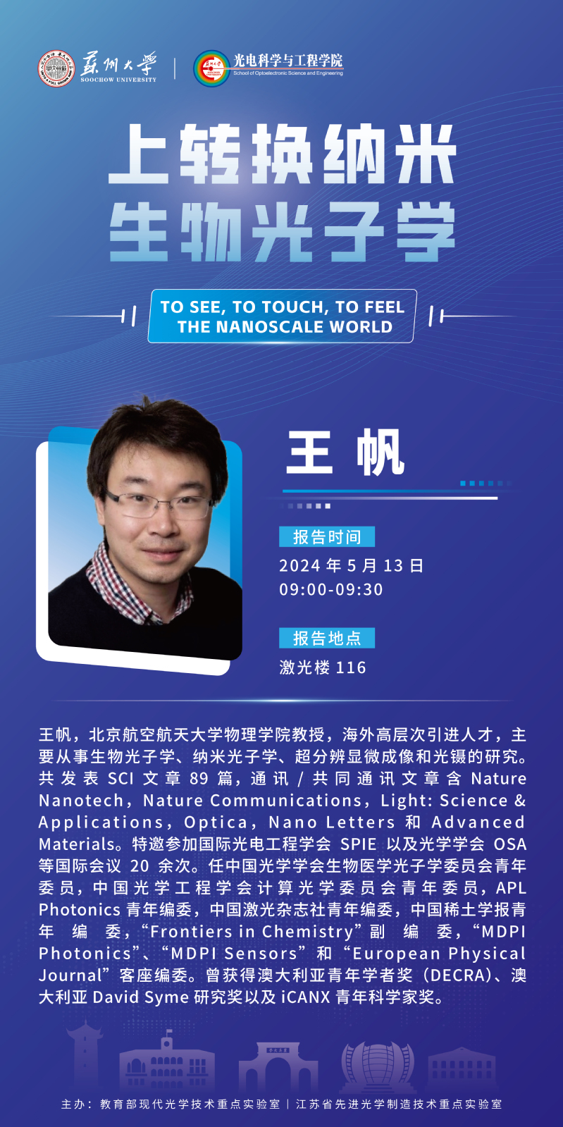 学术报告:上转换纳米生物光子学 -to see, to touch, to feel the nanoscale world
