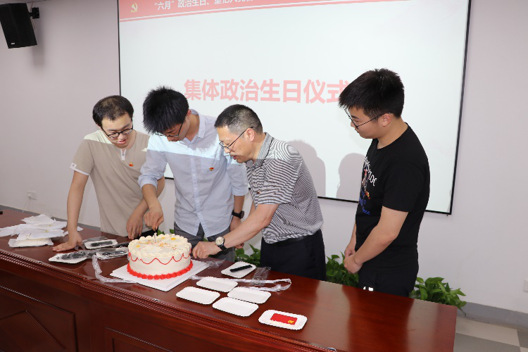 活动现场为六月份入党的九位师生党员举行集体政治生日仪式,送上特别的“政治生日贺卡”和定制的“生日蛋糕”,进一步强化党员的身份意识和责任意识。