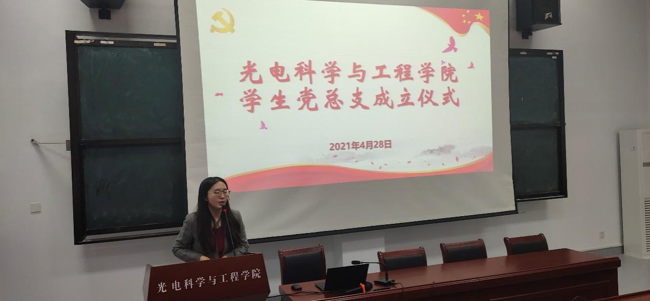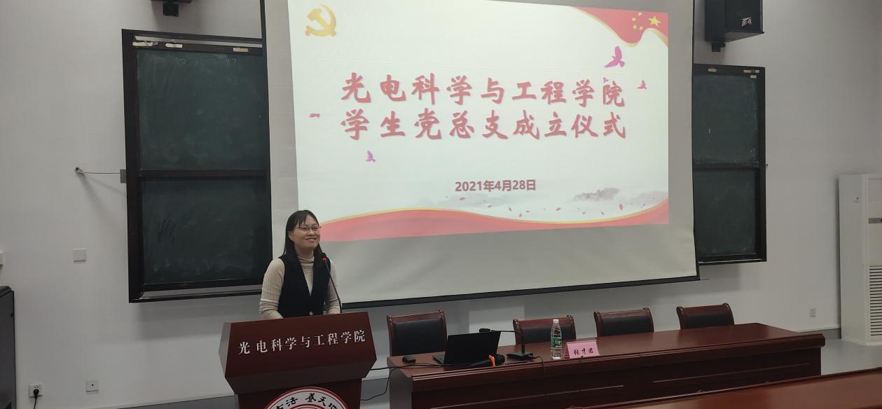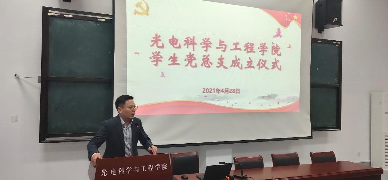 进一步完善学生党员管理体系,发挥好学生党员榜样作用,4月28日,雷速体育 在现代光学技术研究所三楼阶梯教室举行学生党支部成立仪式。仪式由雷速体育 党委副书记、副院长黄冠平主持,雷速体育 党委书记龚呈卉及全体学生党支部成员参加了活动。