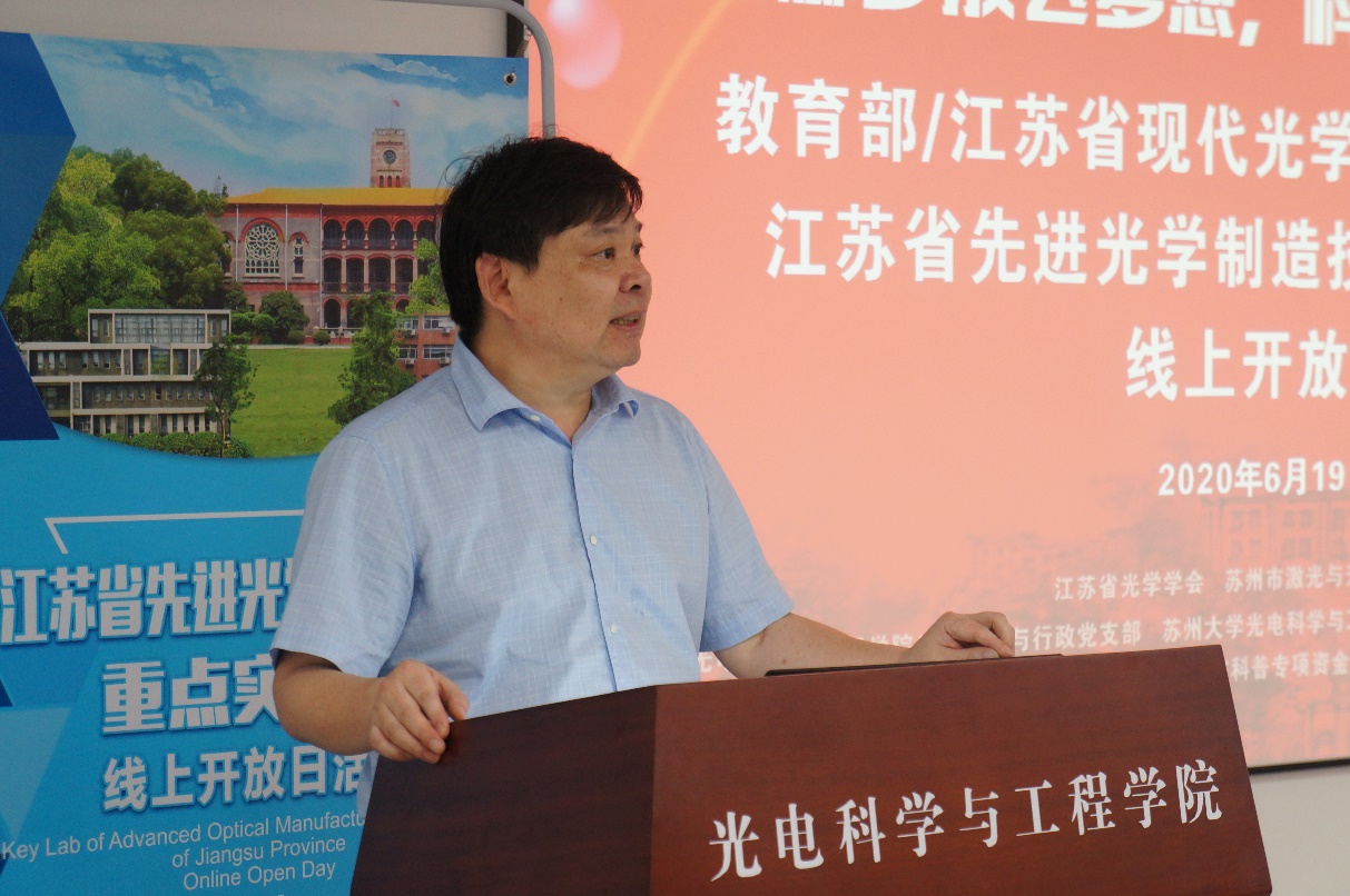 陈建军书记对大家的积极参与表示衷心感谢和热烈欢迎。他表示,重点实验室是依托于光电雷速体育 的省部级创新平台,在薛鸣球院士、潘君骅院士及所有苏大光电人的共同努力下,已形成了“纳米结构”光学理论设计以及“纳米精度”光学制造的两大特色,成为全国先进光电子技术的研究高地。希望通过此次云端开放,使同学们激发起光电探索的兴趣,勇攀科学高峰,企业家和市民朋友们能更好的了解成果,共谋创新发展。
