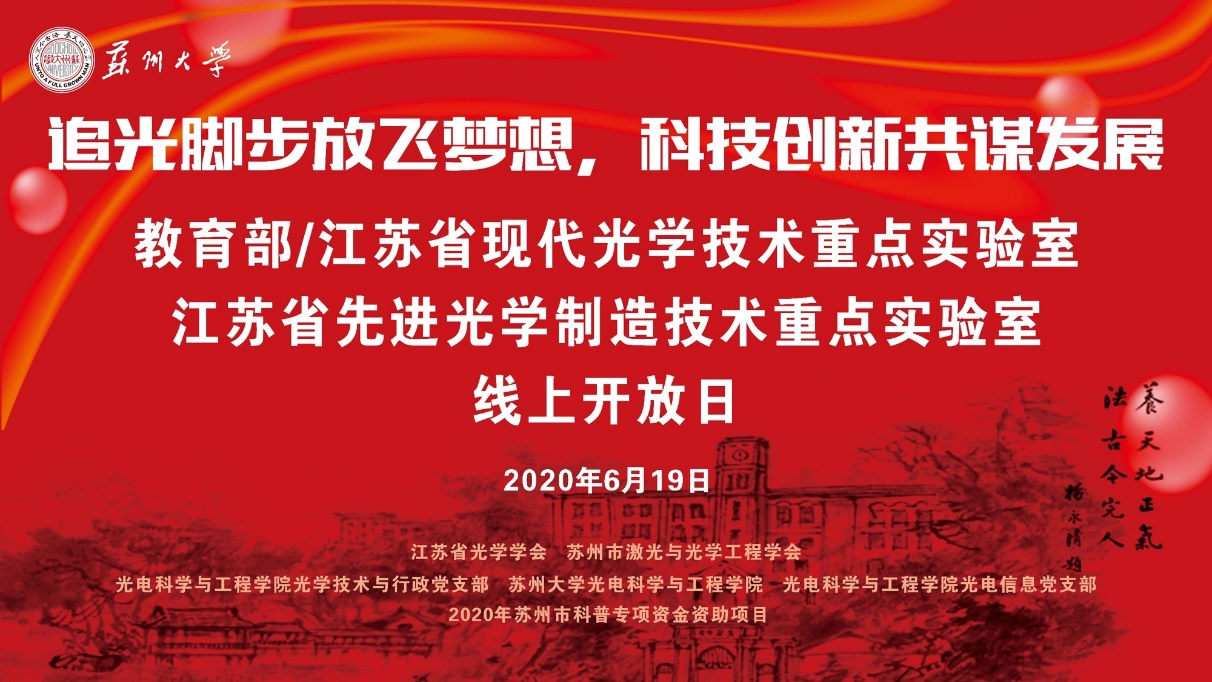为深入贯彻习近平总书记关于新冠肺炎疫情防控系列重要讲话精神,以及科技部《关于科技创新支撑复工复产和经济平稳运行的若干措施(国科发区〔2020〕67号)》和江苏省科学技术厅《关于组织全省重点实验室“助力企业、共渡难关”专题活动的通知》(苏科机发〔2020〕88号)文件精神,积极学习贯彻《中华人民共和国科学技术普及法》,迎接全国科普行动日的到来,教育部/江苏省现代光学技术重点实验室、江苏省先进光学制造技术重点实验室于2020年6月19日举行了线上开放日活动,共有来自社会各界的500多位中小学生、行业代表、企事业单位代表报名参加活动,同时,活动全程通过在线直播的形式向社会大众开放。