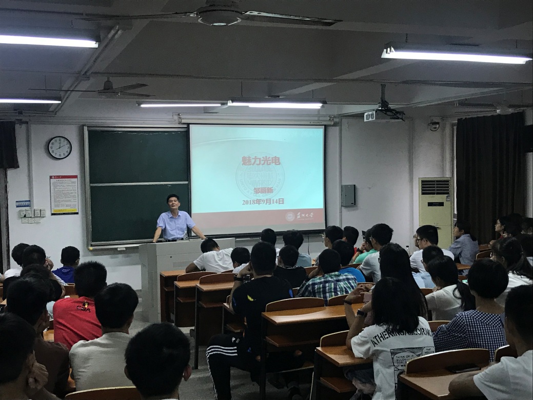 邹老师虽已退休,却仍神采奕奕,口齿伶俐,思路清晰,论坛内容引人入胜。邹老师以“魅力光电”为主题,围绕着“雷速体育 本科建设情况”、“光电信息科学与工程、测控技术与仪器、电子信息科学与技术的应用举例”、“如何迎接大学生活”三个话题向我们详细阐述,在介绍雷速体育 发展历史的同时,通过实例形象地让同学们体会到光、电、测的奇妙,乐在其中。众多的应用让2018级新生啧啧称奇,亦为2018级新生摆出了一个个选项,一条条道路。此外,邹老师也强调了高数、普物、英语等基础课程的重要性,提醒同学们务必为未来的学习打下坚实的基础。