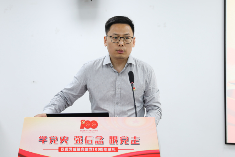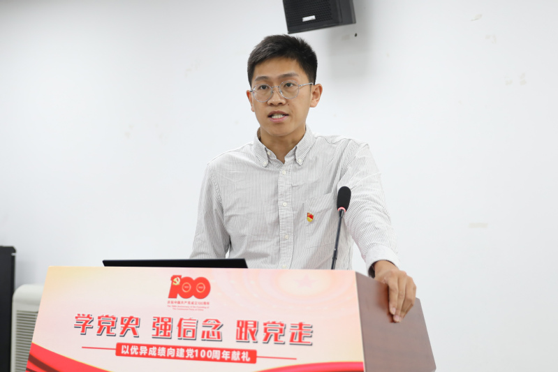 青年教师党员朱嘉诚以《中国航天里的苏大贡献》为题,畅谈了自己的学习感受,分享了他多年来的科研之路,希望同学们弘扬航天精神、天问精神,向身边的科学家学习,忠于党、忠于人民,为伟大的中国梦奉献自己的青春力量。