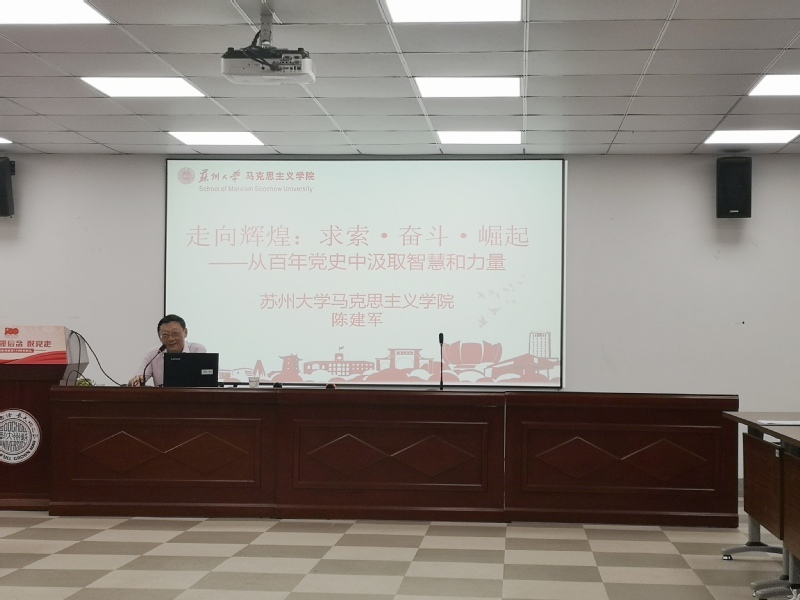 首先,陈建军书记从习近平总书记在党史学习教育动员大会上的讲话出发,向全体党员阐明了党史学习教育的重要意义。随后,他分别从“求索、奋斗和崛起”三个角度,结合自身学习体会,深入讲解了中国共产党成立这一百年所发生的重要历史事件,进一步加强党员们对于党史的了解。他表示,“明镜所以照形,古事所以知今”。我们学习党史不是为了从成功中寻求慰藉,更不是为回避今天面临的困难寻找借口,而是总结历史经验、把握历史规律,从中汲取开拓前进的勇气和力量。我们不仅要学党史,而且必须学好,力求做到明理、增信、崇德、力行。