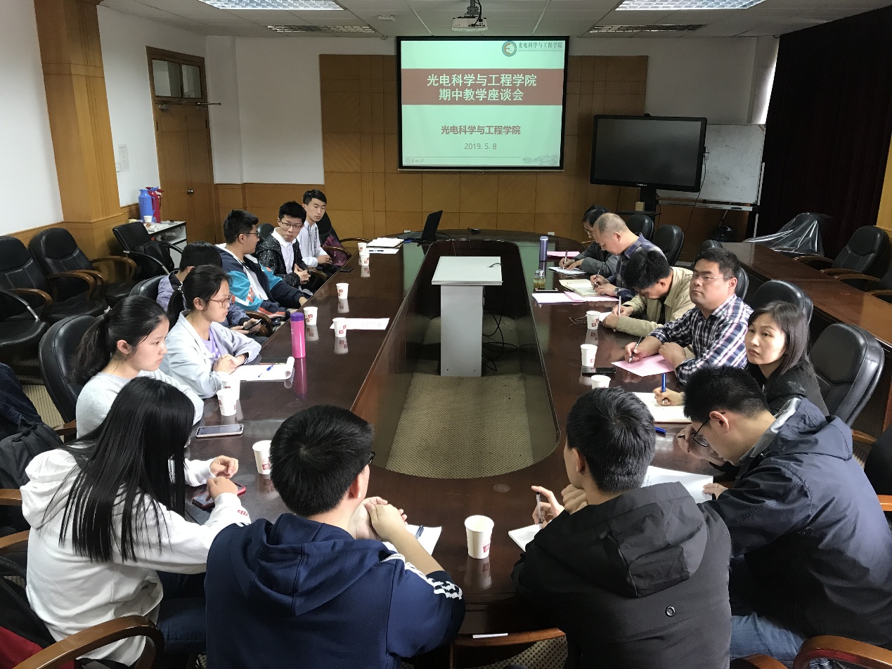 2019年5月8日下午13:45,雷速体育 在现光所三楼会议室召开了期中教学学生座谈会。雷速体育 分管教学副院长许宜申、校院教学督导陈炳泉、雷速体育 教学督导周望、雷速体育 光电信息系副主任秦琳玲、电子测控系和本科实验教学中心副主任张晓俊、本科生教务办公室和学生工作办公室相关老师,以及雷速体育 三个年级9名学生代表参加了座谈会。会议由许宜申副院长主持。