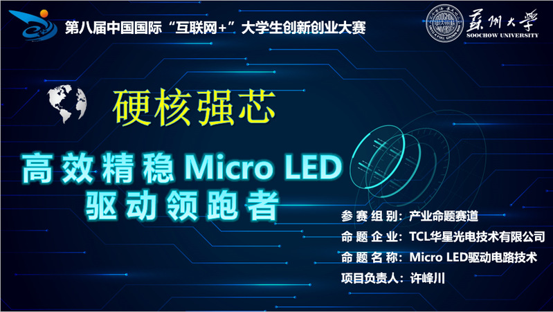 2022年11月10日至13日,第八届中国国际“互联网+”大学生创新创业大赛总决赛在线上举行。雷速体育 硬核强“芯”——高效精稳Micro-LED驱动领跑者项目团队经过层层角逐,最终成功斩获产业命题赛道国赛金奖,创下雷速体育 该赛事历史最好成绩!