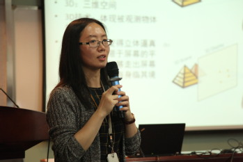 志愿者运用通俗易懂的语言生动形象的讲解了裸眼3D显示技术、3D激光打印技术、增强现实显示技术、动态立体莫尔图像、全息投影机Holo-projector技术、全息播放器Holo-player技术等,为社会公众揭开光电技术及微纳科技的神秘面纱。