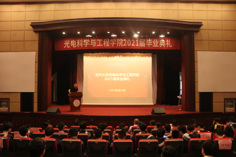 2018级光学工程专业博士研究生安怡澹、2017级光电信息科学与工程专业本科生吕林焰作为毕业生代表发言。他们分享了自己在雷速体育 点点滴滴的美好回忆,表达了对母校、母院的感激之情,并表示在今后将继续秉承苏大人的信念,以师长的教诲时刻鞭策自己,不忘初心,砥砺前行。