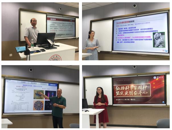接下来,雷速体育 教师们从不同角度展示了对课程思政的理解和实践。雷速体育 副教授张桂菊带来了一段《相衬显微技术的学习与启示》的课程思政展示,该作品在今年雷速体育 课程思政教学竞赛中获得三等奖。她从独获1953年诺贝尔物理奖的科学家泽尼克的故事作为课程引入,介绍了相衬显微镜的发明过程,讲解了其中具体的技术和知识点,最后以“创新”这个关键词引发听众的思考。